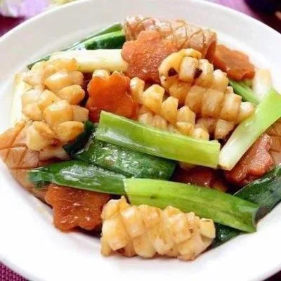 4pcs calamars, 2pcs coquilles saint-jacques, 4pcs scampi, 4pcs poisson blanc (pangasius), oignons, paprika et poireaux | ||
