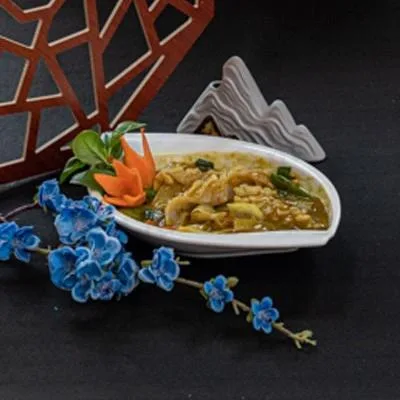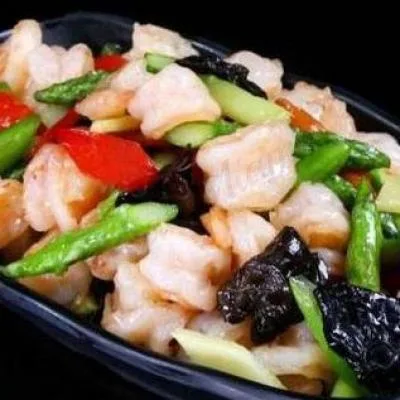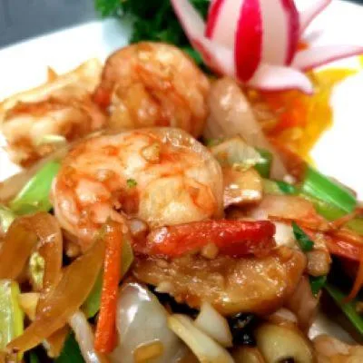 7 pièces gambas, oignons, champignons, courgettes, chou chinois et haricots noirs | ||