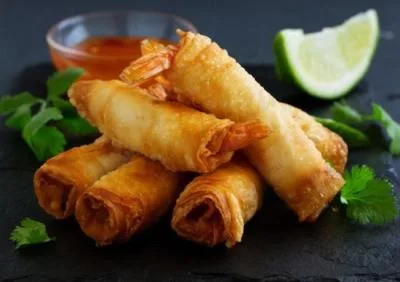 2 pièces - au porc, vermicelles, carottes et oignons - accompagnés de sauce poisson (base de calamars, piment, ail et sel) | ||