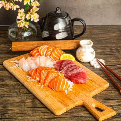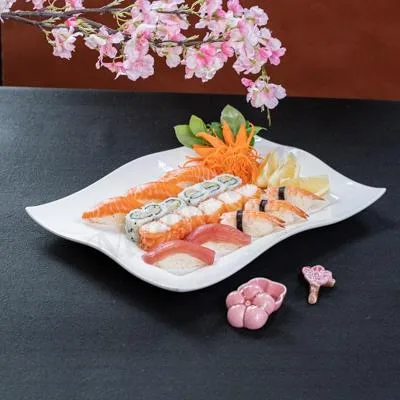 19 pièces - 6pcs california thon cuit avocat, 6pcs maki saumon rolls, 3pcs nigiri saumon, 2pcs nigiri crevette et 2pcs nigiri thon | ||