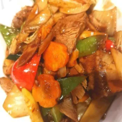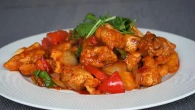 poulet, oignons, paprika, poireaux et poivre oriental | ||