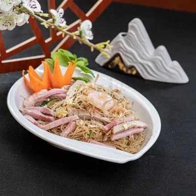 salade, poulet, pousses de soja, carottes et sauce blanche à base de mayonnaise | ||