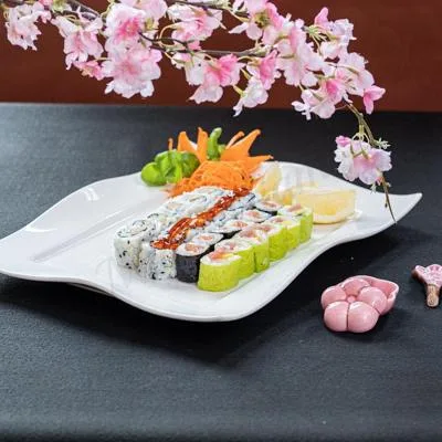 18 pièces - 6pcs spring rolls végétarien (oeuf, concombre, mangue, avocat, radis jaunes), 6pcs soja rolls cheese (philadelphia) concombre, 2pcs nigiri avocat, 2pcs nigiri omelette et 2pcs nigiri radis japonais |