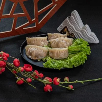 5 pièces raviolis chinois au porc, oignons fins, bambou, carottes et huile de sésame |