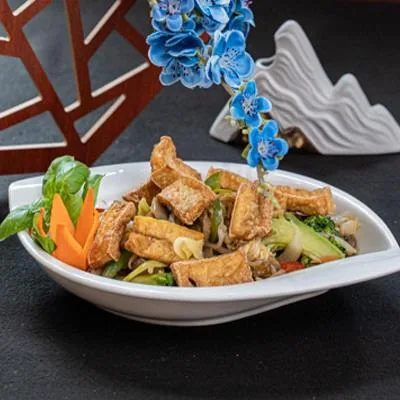 tofu et hachée de porc et scampi à la sauce piquante | ||