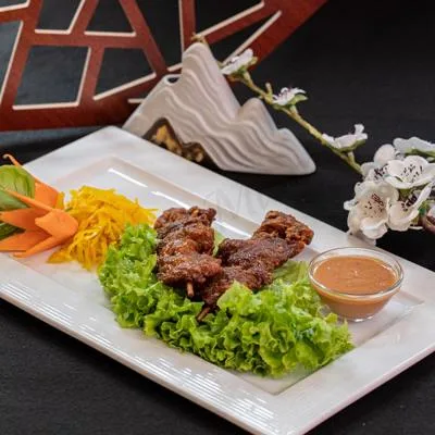 2 pièces - poulet, porc et crevettes - accompagnés de sauce aux cacahuètes (pâte de cacahuète, farine, tomates et piments) | ||