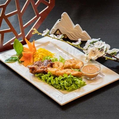 10 pièces - poulet, vermicelles, oignons et carottes - accompagnées de sauce aigre-douce | ||